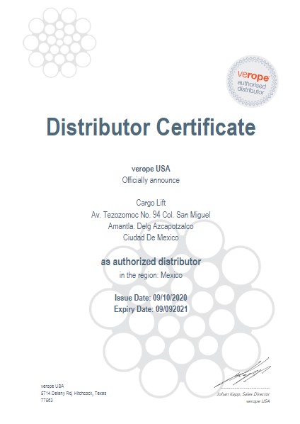 Cargo Lift adquiere la distribución exclusiva para Mexico y distribución para EUA de los cables High Performance marca Verope.