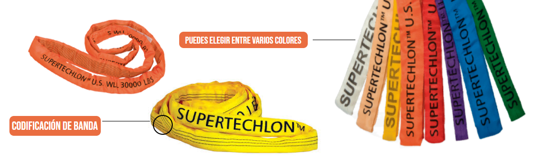 • Capacidad estipulada de la eslinga impresa en la funda SUPERTECHLON ®